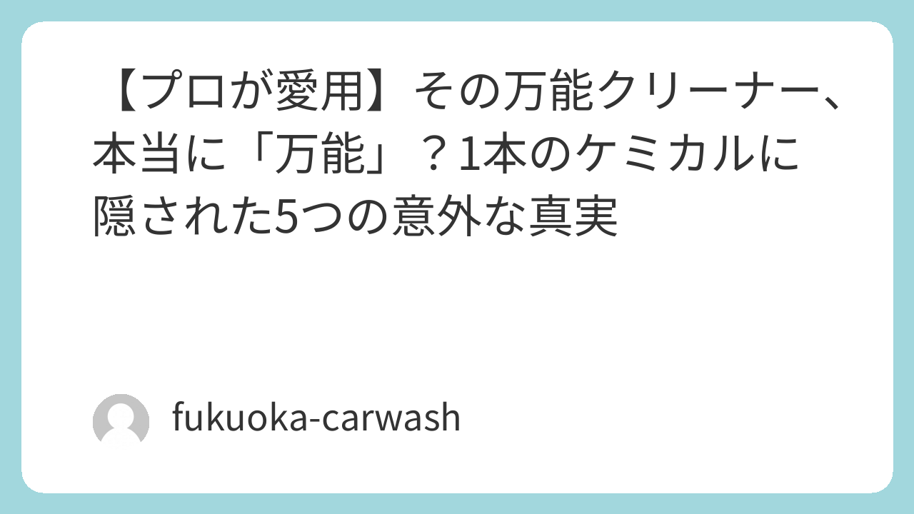🚗 あなたも「ケミカルを理解するユーザー」に